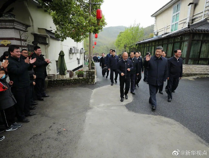 3月30日下午,习近平总书记时隔15年再次来到浙江安吉县余村考察。2005年8月15日,时任浙江省委书记习近平在余村考察时首次提出“绿水青山就是金山银山”的科学论断。沿着村里道路,看到青山叠翠、流水潺潺、道路整洁,家家户户住进美丽楼房,习近平十分高兴。村民们围在路旁,纷纷向总书记问好,欢迎总书记再次来到余村。习近平说,时间如梭,当年的情形历历在目,这次来看完全不一样了、美丽乡村建设在余村变成了现实。余村现在取得的成绩证明,绿色发展的路子是正确的,路子选对了就要坚持走下去。