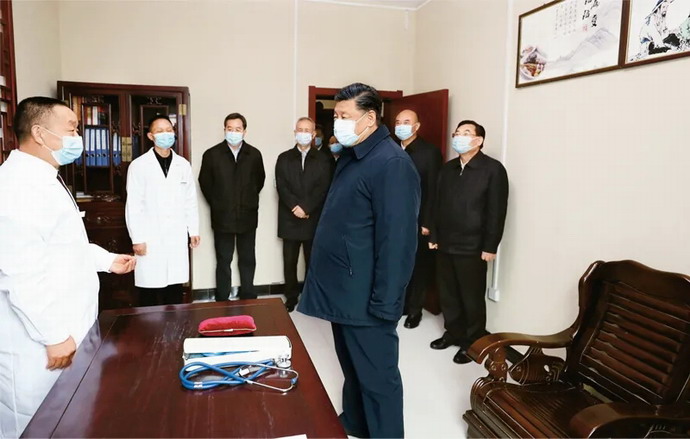 2020年4月20日至23日,中共中央总书记、国家主席、中央军委主席习近平在陕西考察。这是4月21日,习近平在安康市平利县老县镇卫生院,了解基层卫生防疫、医疗保障工作。新华社记者鞠鹏/摄