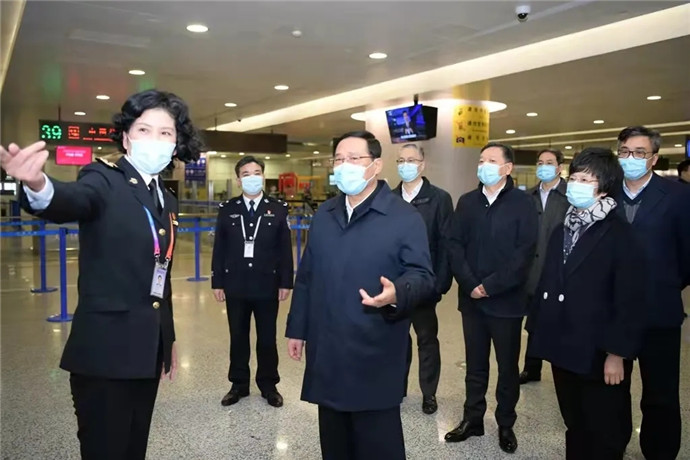 李强指出,口岸是疫情防控的重中之重,外防输入的“第一道防线”必须坚决守住守牢,把“防”的工作做得更实更细更到位。面对当前疫情新变化新挑战,要坚决克服麻痹思想、厌战情绪、侥幸心理、松劲心态,压实联防联控机制、夯实全程闭环管理、持续抓好督促检查。两年来,持续奋战在机场各个运转岗位上的同志们非常辛苦,很不容易,克服种种困难,舍小家为大家,向你们表示感谢。希望大家继续发扬不怕疲劳、连续作战的精神,枕戈待旦、事不过夜的精神,科学严谨、认真细致的精神,跨前一步、通力合作的精神,全力以赴守卫好国门、守护好城市。全市各方面要提供坚强保障,为基层一线防疫人员送温暖、办实事、解难题,让大家更加安心安全坚守在岗位上。要持续引导市民加强防护、高度自律,齐心协力、共同筑牢城市疫情防控的铜墙铁壁。