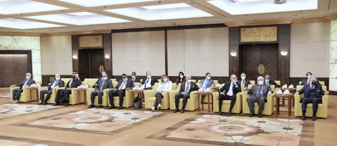 阿尔及利亚驻华大使布哈利法、巴勒斯坦驻华大使马赫达维、突尼斯驻华大使哈立德、阿联酋驻华大使扎希里、黎巴嫩驻华大使贾布尔、索马里驻华大使阿瓦莱、毛里塔尼亚驻华大使维拉利、卡塔尔驻华大使杜希米、约旦驻华大使侯塞尼、阿曼驻华大使纳赛尔、苏丹驻华大使加法尔、阿盟驻华代表处主任马哈茂德,利比亚、也门、埃及、摩洛哥、科摩罗、伊拉克等国驻华使节,上海市领导诸葛宇杰、宗明,外交部部长助理邓励参加会见。