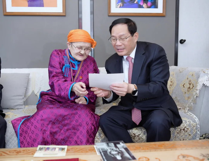 对内蒙古人民的深情厚谊表示诚挚谢意和崇高敬意,祝愿都贵玛老人健康长寿、生活幸福